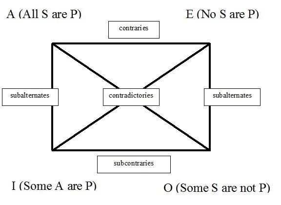 The ancient Greek philosopher Aristotle is credited with discovering or developing the first system of formal logic. One of the features of Aristotle’s system was the square of opposition, shown here. “S” stands for the subject of the premise and “P” stands for the predicate (second part) of each premise.